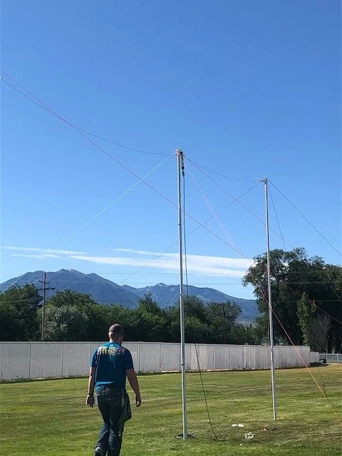 A member of the West Desert Amateur Radio Club assisting with setting up a Dipole antenna for Field Day in 2020