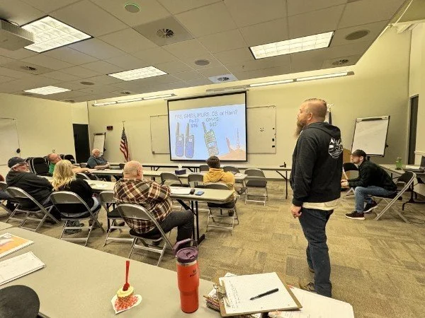 Club Vice President Shaun Summers giving a presentation on FRS/GMRS radios.